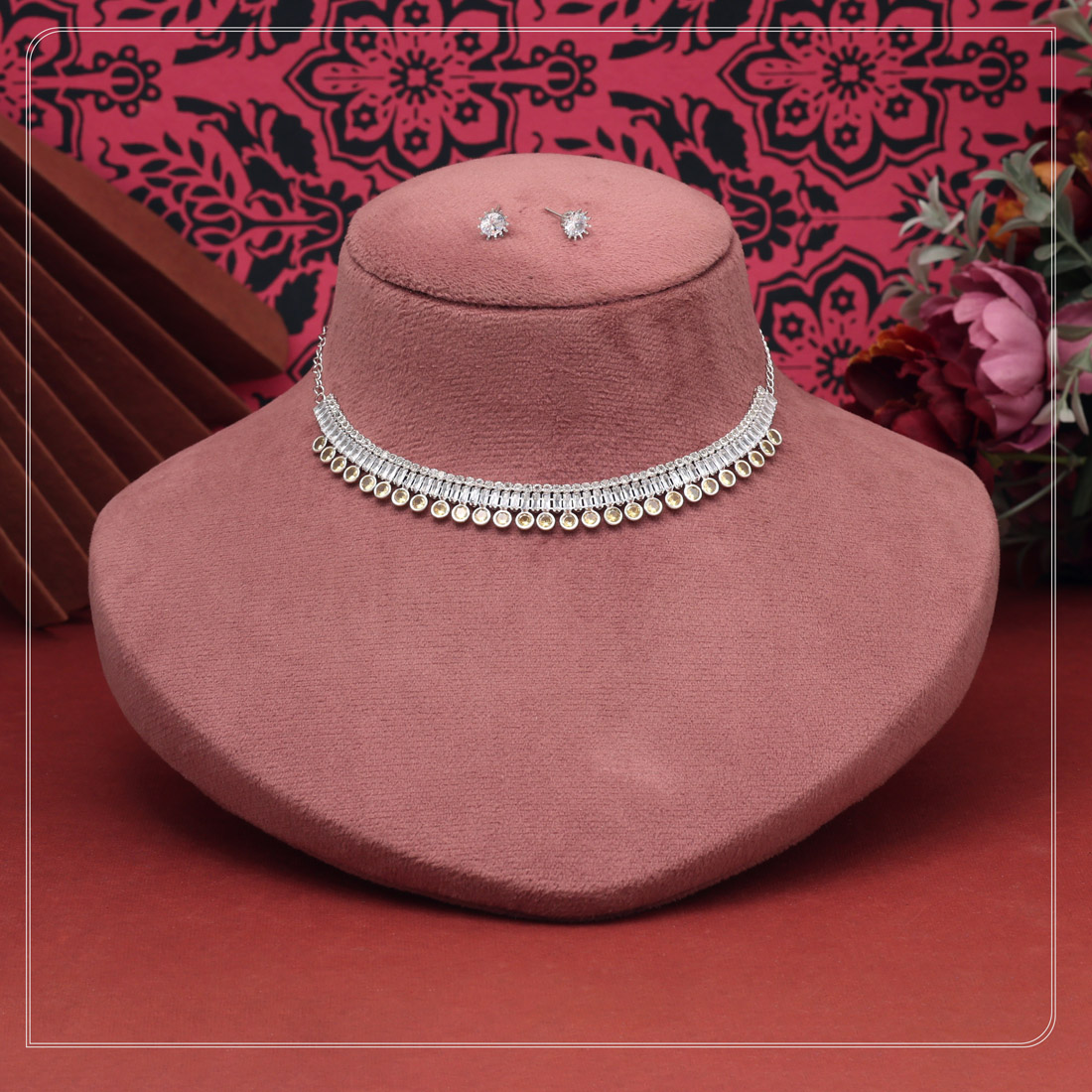 Ruby Color Stone Necklace Set